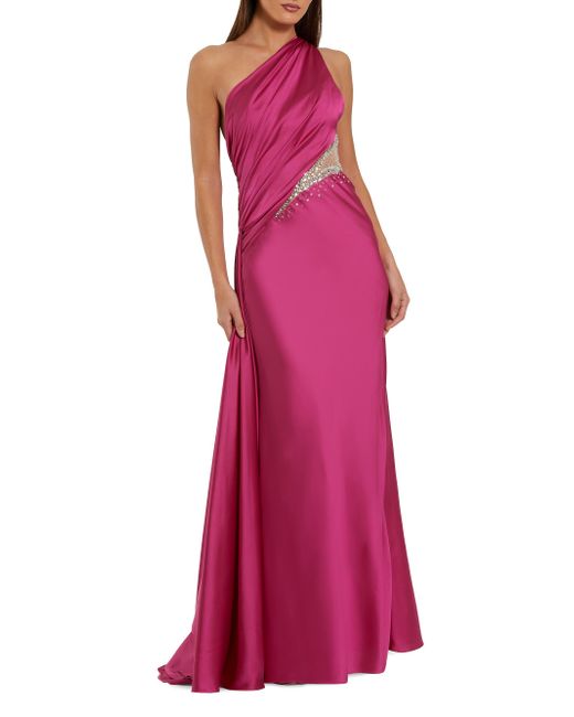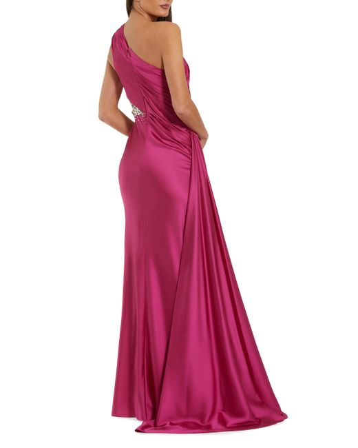 Embellished at the side cut-out, Mac Duggal's stunning satin gown flows elegantly from the one-shoulder design. Asymmetric neck Sleeveless Back zip closure 100% polyester Lining: 100% polyester Spot clean Imported SIZE & FIT Runs true to size About 61" from shoulder to hem Model measurements 5'10" tall Model is wearing a US size 4 ABOUT THE BRAND Mac Duggal's first eveningwear hit, in the mid-1980s, was an A-line dress crafted from tulle with handpainted stars decorated its lining. Since then, the label has become an eveningwear go-to and Hollywood favorite. Nicknamed the "king of bling," the eponymous designer uses sophisticated ornamentation and eye-catching fabrics as a nod to his Indian heritage. Dress Collections - Mac Duggal > Mac Duggal > Saks Fifth Avenue. Mac Duggal. Color: Magenta. Size: 2.