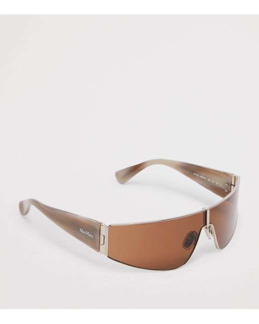 Offering protection from the sun whilst armouring your ensemble in contemporary chic, Max Mara's Shield sunglasses channel the brand's fashion-forward sentiment. Bold geometric lines define the silhouette, complemented by oversized lenses and the House's moniker at the temples - a proud marker of provenance and modern sophistication.