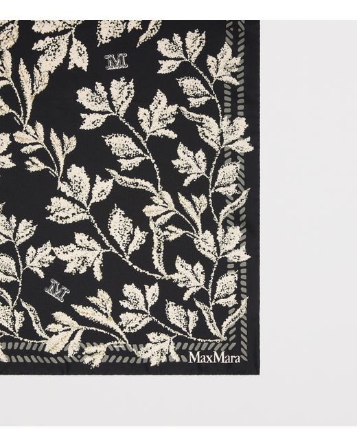 An intricate trellis of shimmering leaves and winding vines unfolds across the dark expanse of this Max Mara silk square scarf. Centred by a bold, ornate ‘M' and surrounded by a delicate border of twisted rope, the botanical motif is rendered in a pale, high-contrast finish that catches the light with every movement.
