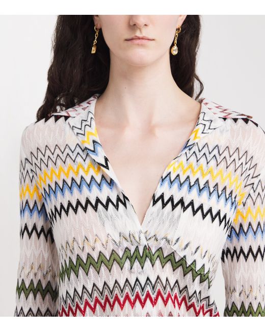 While Missoni's chevron design may have originated as an unexpected textile experiment, the now-iconic zigzag motif can be identified with the House even before glancing at the label. Here, the Italian brand applies the design to this blouse, featuring a collared neckline for an elevated touch.