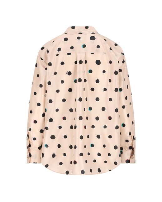 pink and black silk Falena Dots print long sleeve concealed button-fastening