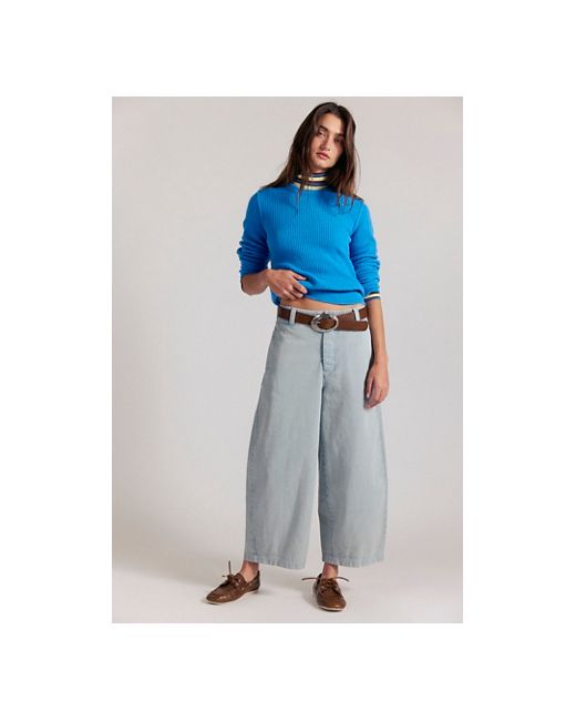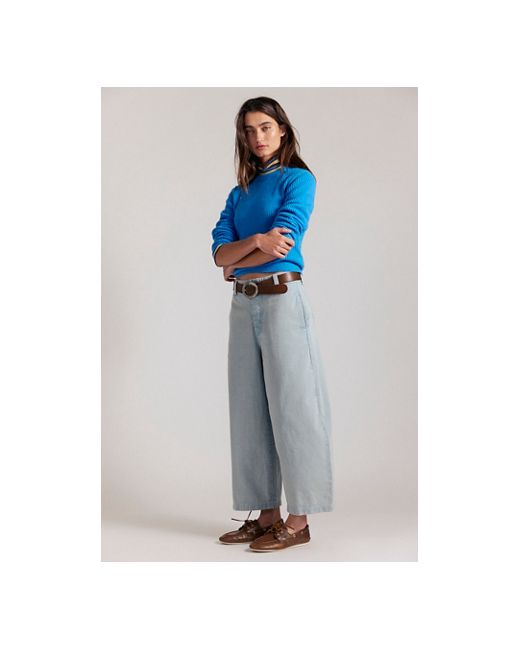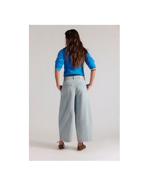Forever cool and classic, these totally timeless chino pants from our We The Free collection are featured in a high-rise, wide-leg style cropped just above the ankle with a slight barrel touch for added shape. * Oversized barrel legs * High-rise *Zip fly * Side and back slit pockets **Fit Note:** Size up for slouchier look We The Free Lay Down Chino Pants at Free People in Pearl Blue, Size: US 0