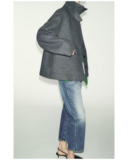 Cropped Jacket Wool Blend Ladies Large Double Breasted BNWT