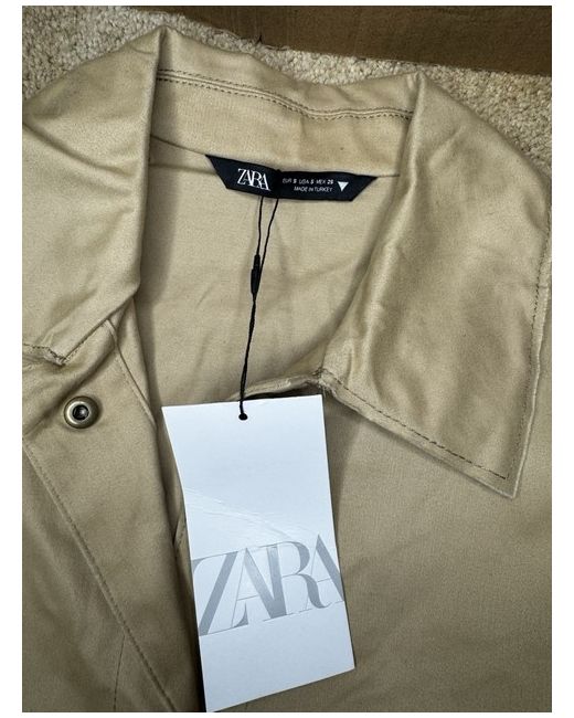 Camel Belted Faux Leather Overshirt jacket L UK14 G99L