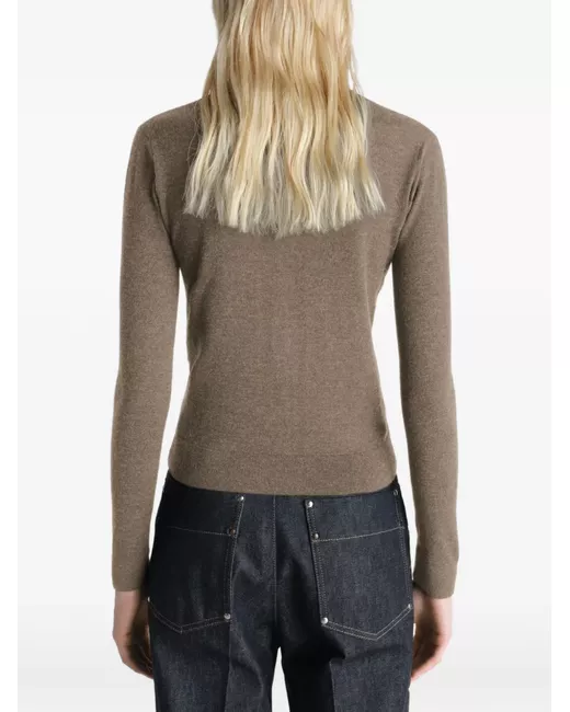 brown wool V-neck button fastening long sleeves