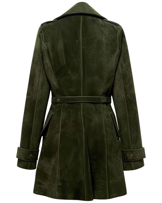 Women's Green Olive Suede Leather Double-Breasted Trench Coat Winter Overcoat