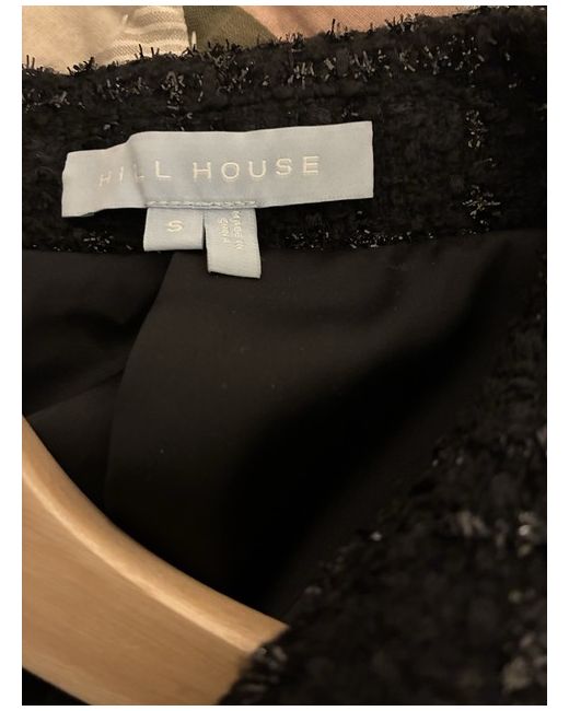 The Hill House Bea Jacket in black tweed with beautiful rhinestone buttons is a stylish and versatile addition to any woman's wardrobe. With a short length & fluted sleeves this jacket is perfect for casual or formal occasions. The rhinestone buttons add a touch of sparkle. This jacket from the brand Hill House is a regular fit size S (UK 10).