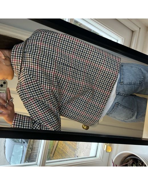 This Next Brown Houndstooth Double Breasted Short Trench Coat in size 10 is a stylish and practical outerwear option for the winter season. Made from polyester insulation, this regular fit coat from the brand NEXT is perfect for casual occasions. The brown colour and classic trench coat style make it a versatile addition to any woman's wardrobe.