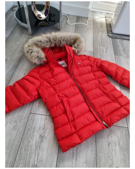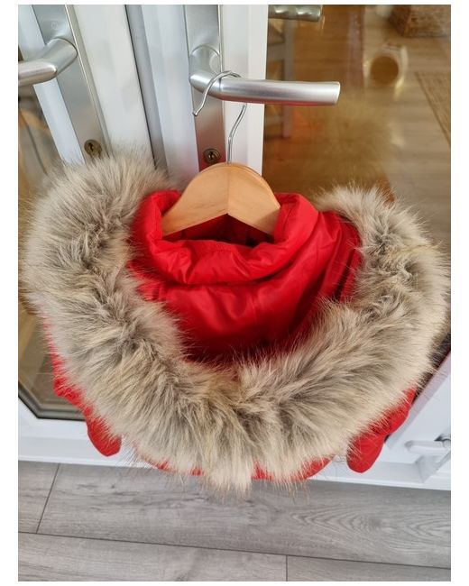 Brand new, never worn, bright red colour, size large, approx UK12. Pit to pit: 20" Length: 24" Fur and hood are removable. Made from down and feathers so lovely and warm in the winter weather. I will send the same or next day. (71)