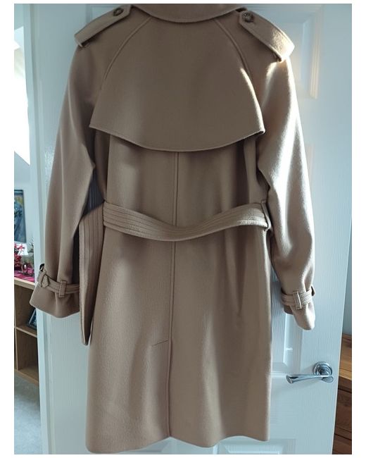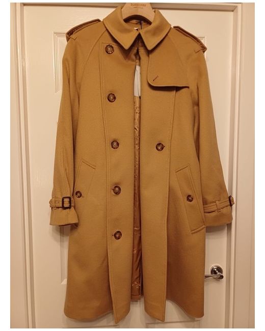 Absolutely 100% Genuine Burberry Lakehurst ladies 3/4 length wool coat in Camel . Brand new with tags garmet bag and wooden Burberry branded coat hanger and Burberry receipt . This coat can be worn several ways , belt in front , belt behind , front flaps buttoned back , etc etc see pictures . Label says size 10 ( American ), but this is a UK 14 . Will include the Burberry reciept , bought in December 2025 .
