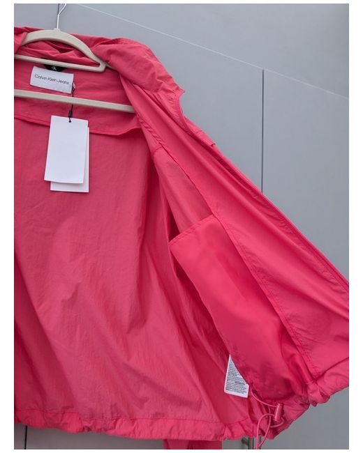 The Calvin Klein Windbreaker Jacket in Pink Flash, size L, is a stylish and practical addition to any woman's wardrobe. Made from durable polyester, this zip closure jacket is perfect for casual occasions. The vibrant pink colour adds a pop of femininity to the classic windbreaker style, making it a versatile piece that can be worn year-round. Machine washable for easy care, this Calvin Klein jacket is a must-have for any fashion-forward woman looking to stay warm and chic.