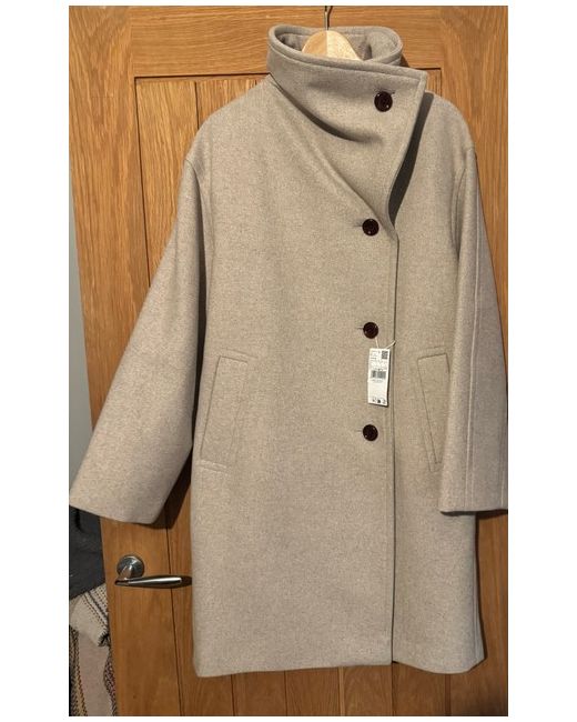 This Mango Midi Maxi Lapel Coat in size Large is a stylish and versatile outerwear piece perfect for the winter season. The mid-length coat features a classic button closure, beige colour, and a regular fit, making it suitable for casual occasions.
