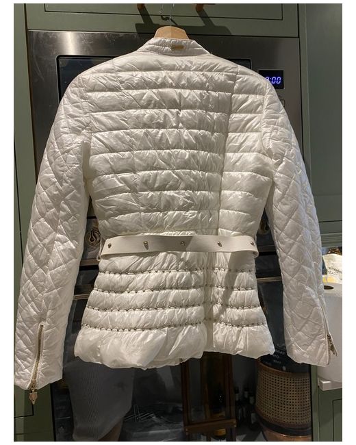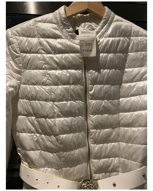This jacket is really smart but its not a big S ie size 8 - would say its a 6 or a small size 8. Its described as fitted on the label. Its a fashion item. Made of polymide in China.