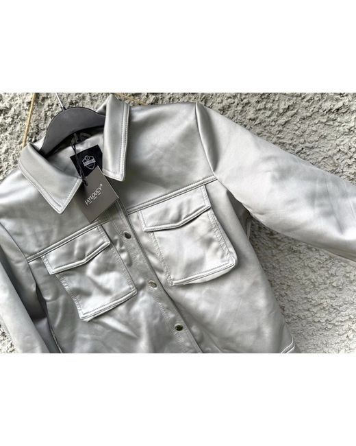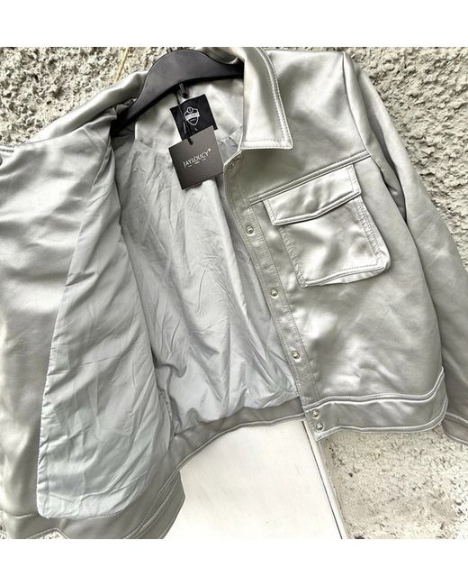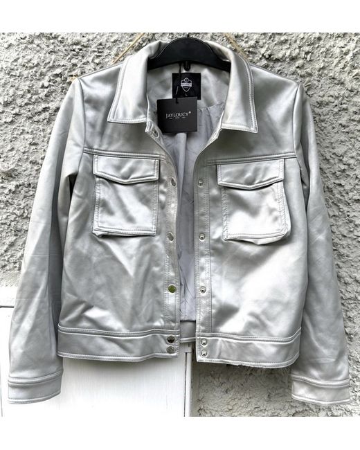 Stylish Trendy Quirky Rare Find 💎 Super soft material Cropped Size Large New with tags 🏷️ The Women’s JAYLOUSY Paris Metallic Silver Super-soft Designer Jacket in size Large is a stylish and versatile outerwear piece. Made from leather with a polyester lining, this short jacket is perfect for travel and casual occasions. The silver colour and biker style add a touch of edginess, making it a chic addition to any wardrobe. Designed by JAYLOUSY PARIS, this jacket is crafted with care and attention to detail, ensuring both quality and style for the modern woman.
