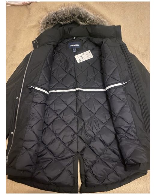 Brand new, never worn women’s medium size black coat from Lands’ End. Hyperdry technology, padded parka with fur hood. Retails at £130. Tags still on!