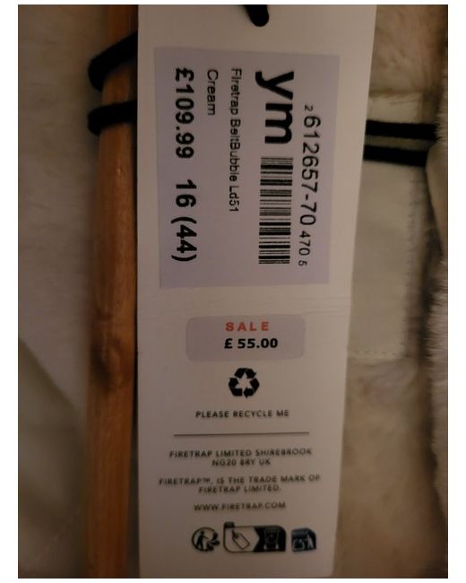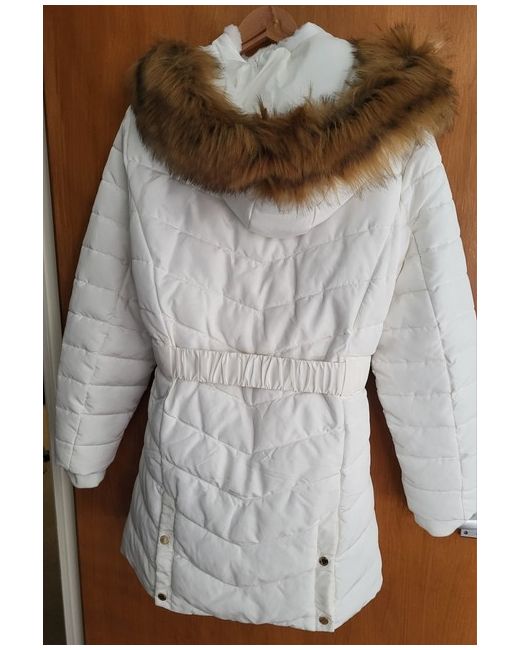Beautiful Padded Coat Firetrap White with gold accessories detachable Hood with detachable fur trim size 16 BNWT RRP £109