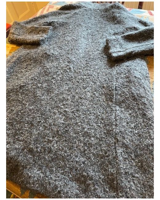 This jacket, or short coat, is rather difficult to describe. Photo 3 shows that it is made from a Mohair mix, predominantly Mohair. It is very cosy but feather light and silky soft. It is very versatile; it could be worn as smart-casual or could be worn on top of an evening outfit, if it was cold, by way of a light coat.