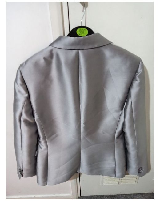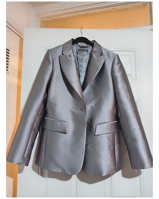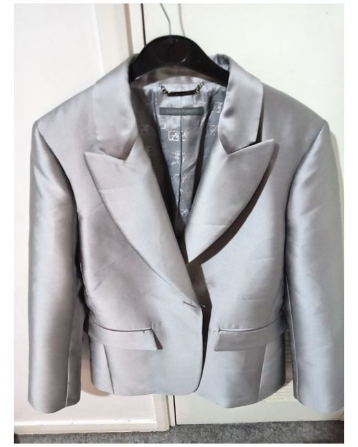 The Alberta Ferretti Women's Silver Blazer in size 10 is a stylish and sophisticated addition to any woman's wardrobe. This short jacket made from 100% silk is perfect for special occasions, with a regular fit that offers both comfort and style. The silver colour adds a touch of elegance, while the dry clean only requirement ensures easy maintenance. The basic jacket design and high-quality construction from Alberta Ferretti make this blazer a timeless and versatile choice for any fashion-forward woman.
