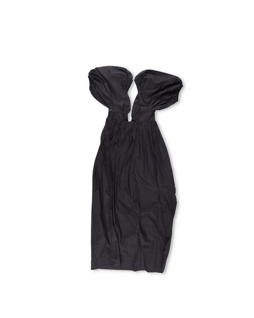 GANNI black midi dress with a V-neck and puff sleeves. Made from organic cotton. Perfect for casual or party occasions in spring or summer.
