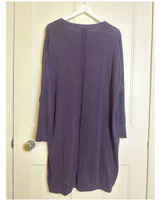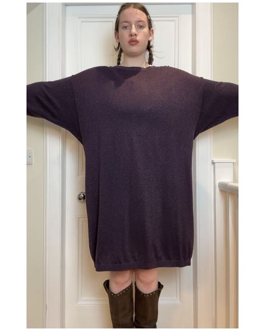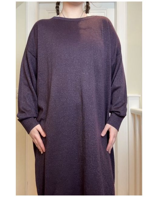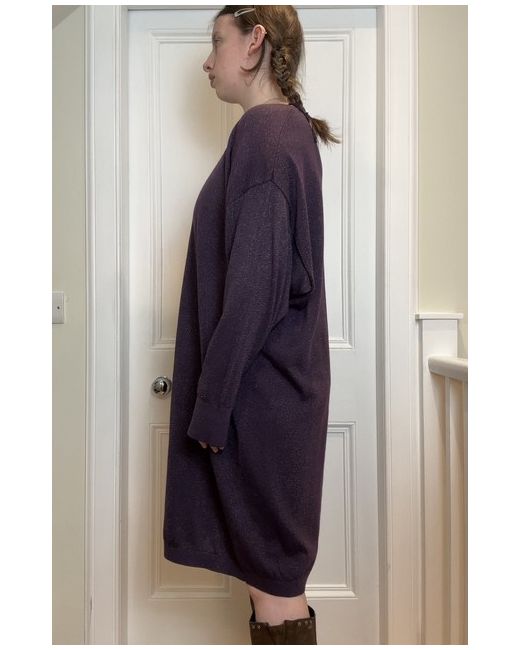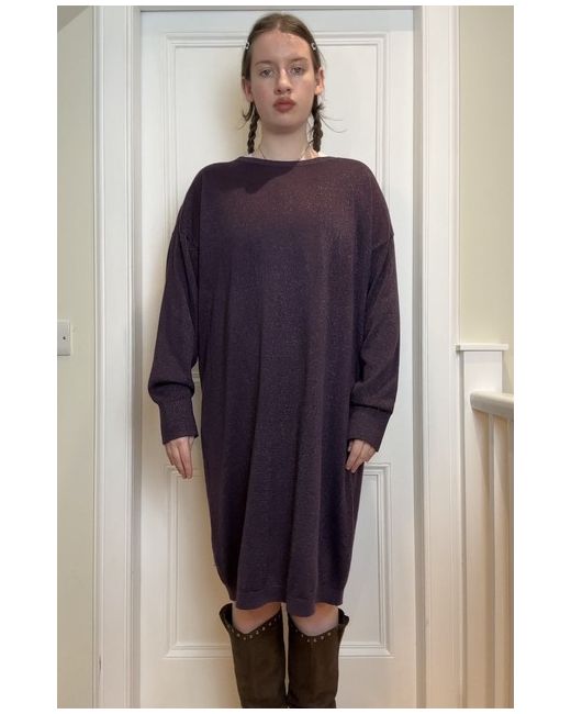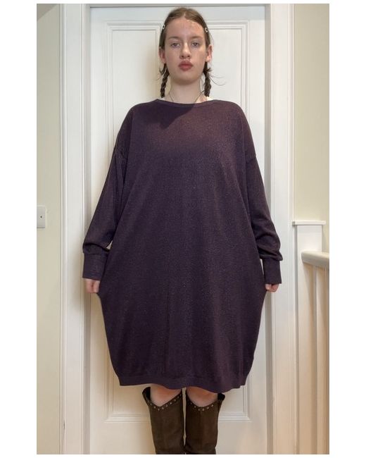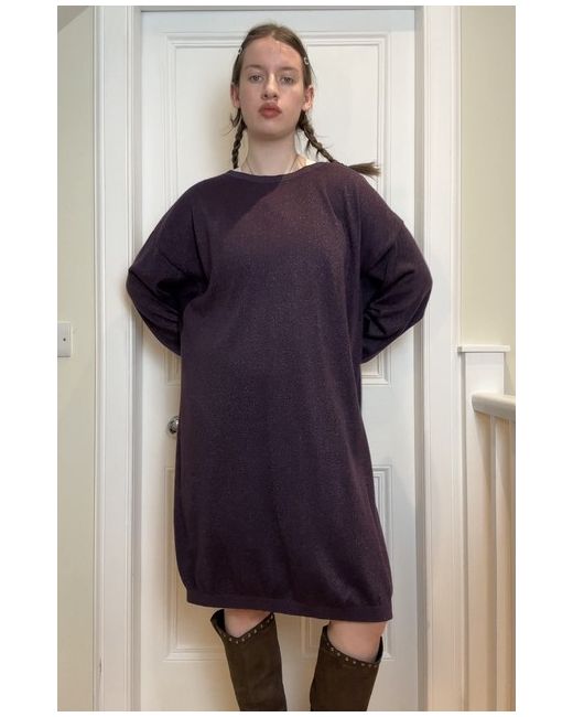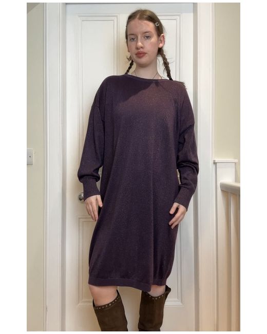 John Lewis new without tags Deep purple sparkly / glittery thread detaili knitted long sleeve slight bat wing sleeves slouchy jumper dress with ribbed cuffs Tag size UK 14 Shown on a UK 10 5’7 Measurements when laid flat: Length from centre of front collar straight down: 94cm Pit to pit: 64cm In perfect condition! Material: 53% polyester, 19% nylon, 15% acrylic, 7% metallic fibre, 5% merino wool & 1% elastane