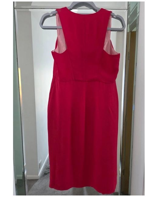 The Pinko Women's Dress is a stylish knee-length fit and flare dress in a deep pink colour, perfect for parties or cocktail events. The dress features a flattering low V-neckline and a convenient zip closure. Material viscose. half lined. Length 39inch, armpit to armpit 17inch.