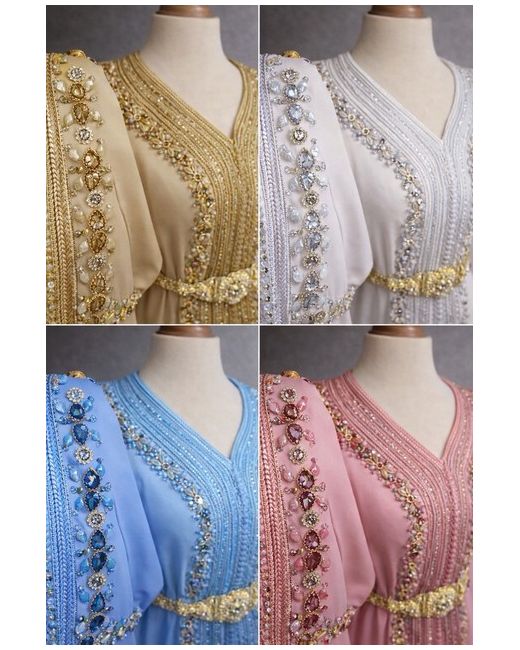 The Lily High Coutour Custom Made Beaded Caftan Occasional Dress is a stunning piece of women's clothing. Made with high-quality materials and hand-stitched beads, this long-sleeve dress features a vibrant multicoloured design perfect for party or cocktail occasions. The pullover closure and one-size-fits-all design make it easy to wear, while the kaftan style adds a touch of sophistication. Personalisation instructions are available, allowing you to tailor the dress to your preferences. Made in Algeria, this handmade dress is ideal for summer and is sure to make a statement at any event.