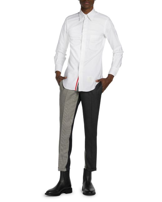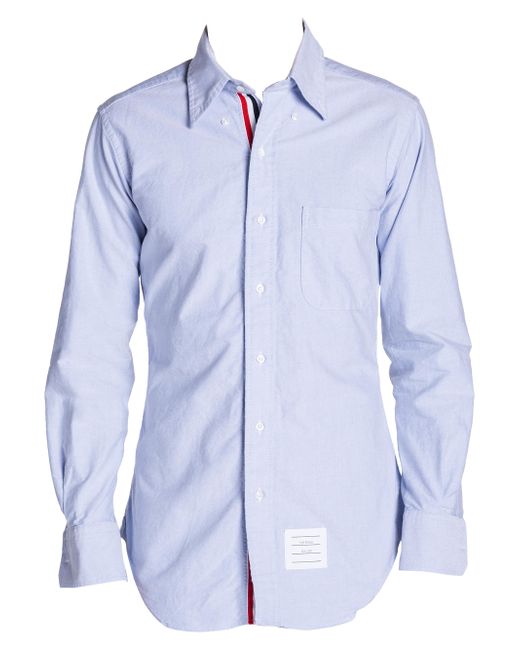 This dress shirt from Thom Brown is crafted of cotton and showcases a Mother of pearl button-down collar, a chest patch pocket, and mitered cuffs. Complete with a grosgrain button placket, this meticulously tailored garment is finished with a curved hem. Button-down collar Chest pocket Long sleeves, mitered cuffs Button-front closure Curved hem 100% cotton Dry clean Made in Italy SIZE About 28" from shoulder to hem Model measurements: 6'2'' tall Model measurements: chest 40'' Model is wearing US size Medium. Men Advcd Dsgnr - Advanced Designer Collec > Thom Browne > Saks Fifth Avenue. Thom Browne. Color: Light Blue. Size: XS.