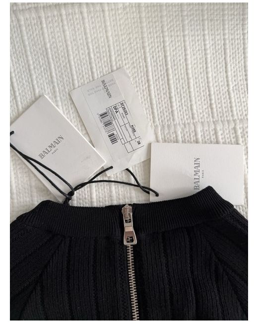 Balmain Wool Knit Dress – Size 38 Black knit dress made from 94% wool and 6% polyester, featuring excellent quality and a refined design. Although labeled size 38, the fabric is highly elastic and adapts beautifully up to a size Large, flattering all body types. Elegant silhouette with signature metallic details. Brand new condition, no flaws.