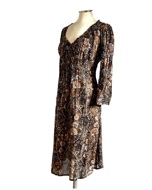 Elastic smock at sleeve and body. Elegant design dress. 49(pit to pit). 104(full length). Floral, size1, nwt( unworn). Folded hem and slit.