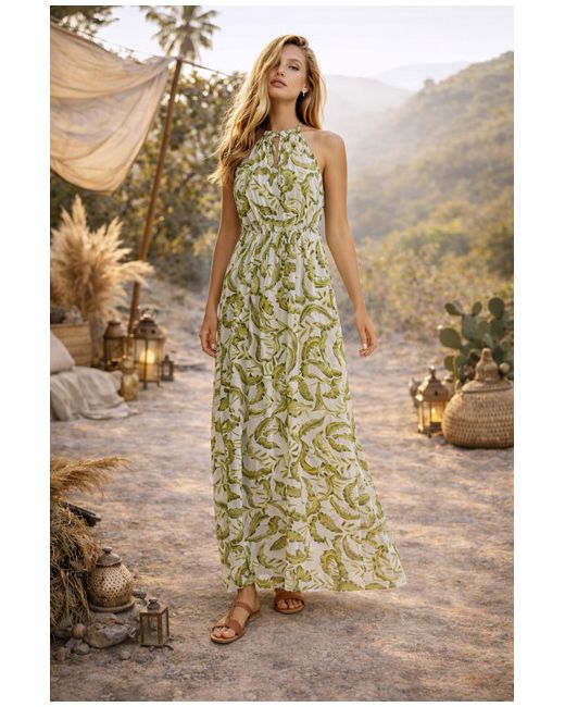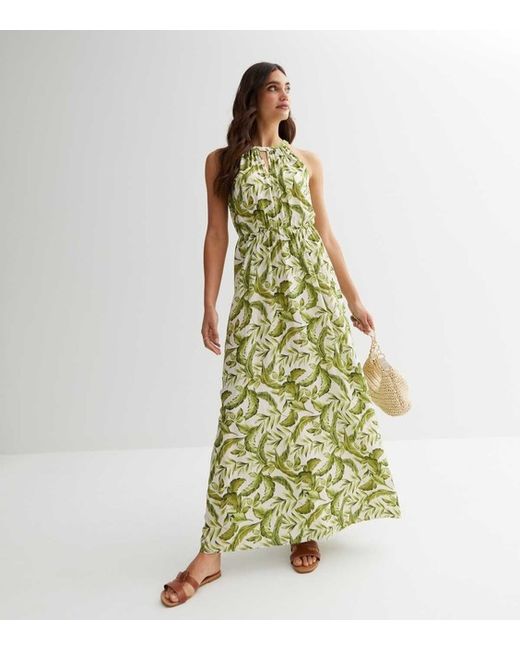 Wear with your fave sandals and accessorise with a cute raffia bag to complete the look. - Maxi length. - Halter neckline. - Leaf print. also lots of space for bust so no worry’s it would be to tight will fit e cup.