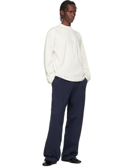 French terry sweatpants. · Concealed drawstring at elasticized waistband · Three-pocket styling · Logo embroidered at front and back pocket · Darts with raw edges at front and back Supplier color: Navy