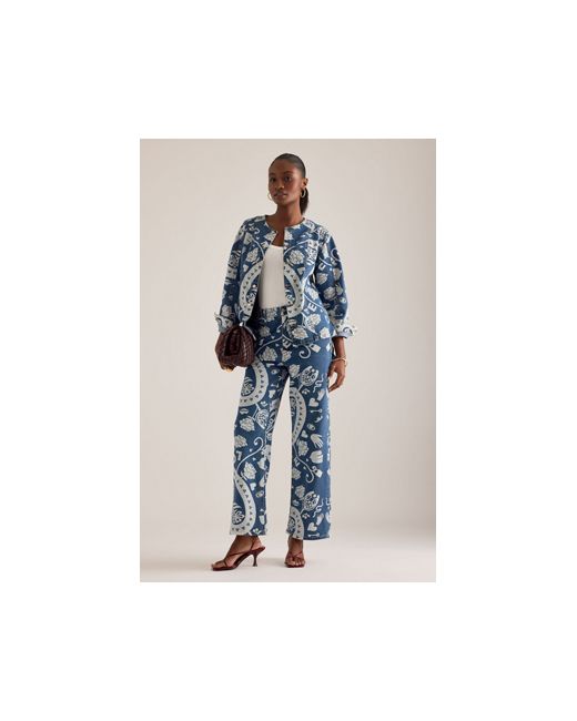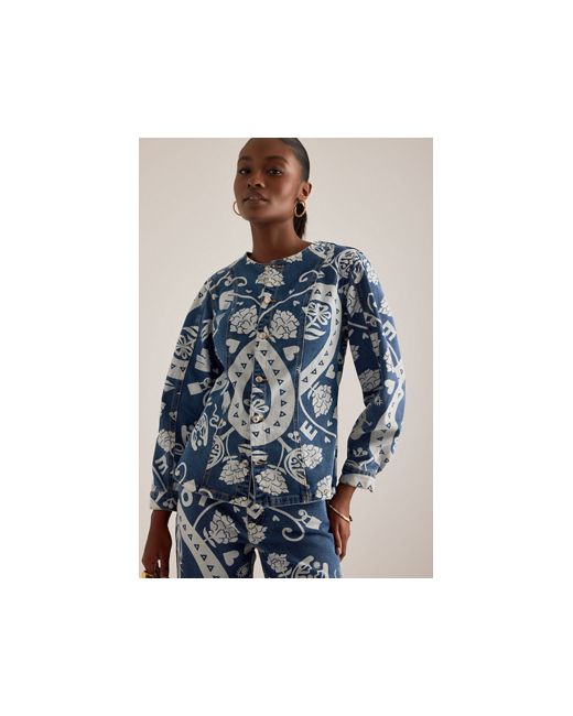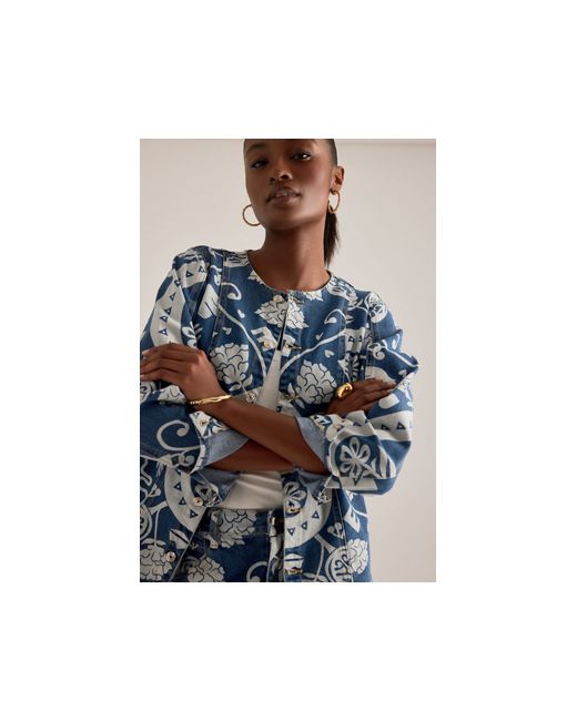 By Never Fully Dressed 92% Cotton, 6% Polyester, 2% Elastane Button front Balloon sleeves Machine wash Imported Amara Collarless Printed Denim Jacket by Never Fully Dressed, Women's Size: Uk 6, Polyester/Cotton/Elastane at Anthropologie