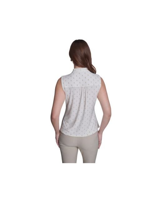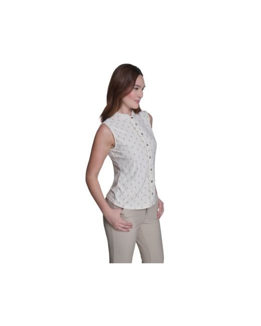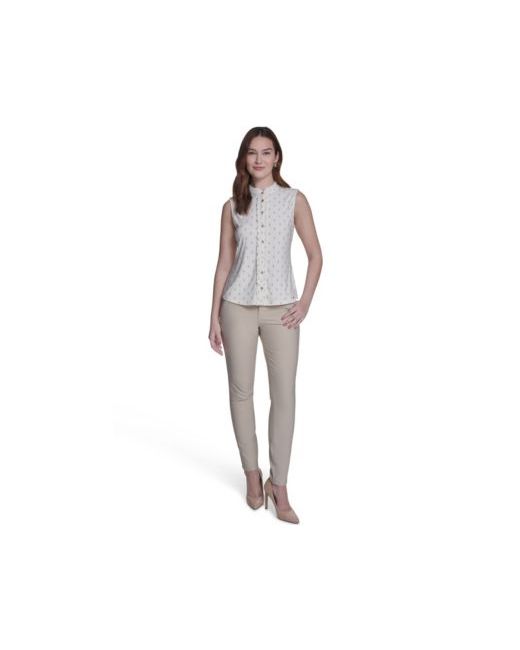 Soften warm-weather styling with playful detail in this Tommy Hilfiger sleeveless top, accented by a ruffle placket for subtle feminine texture. A crewneck silhouette keeps the look cool, casual, and easy to wear.