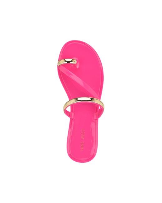 Upgrade your wardrobe in the Nine West Seashell flat sandals. Featuring a slip-on silhouette, fashionable toe and loop and asymmetrical straps. This sandal is sure to impress. Founded in 1978, Nine West empowers women to take on the world in style, from day to night.