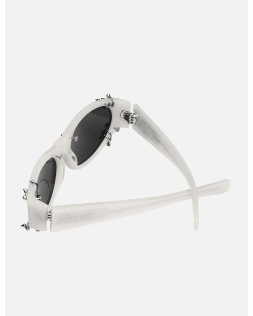 Arcus ParisLynx (Ghost)— AlphaMade of high-gloss acetateOval frameSilver piercing accentsUV400 ProtectionPolarised LensIntegrated nose padThick temples with logosColor: White / Dark Grey