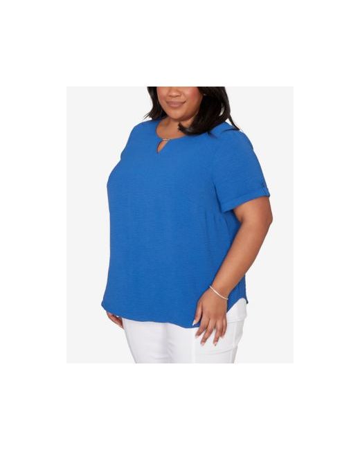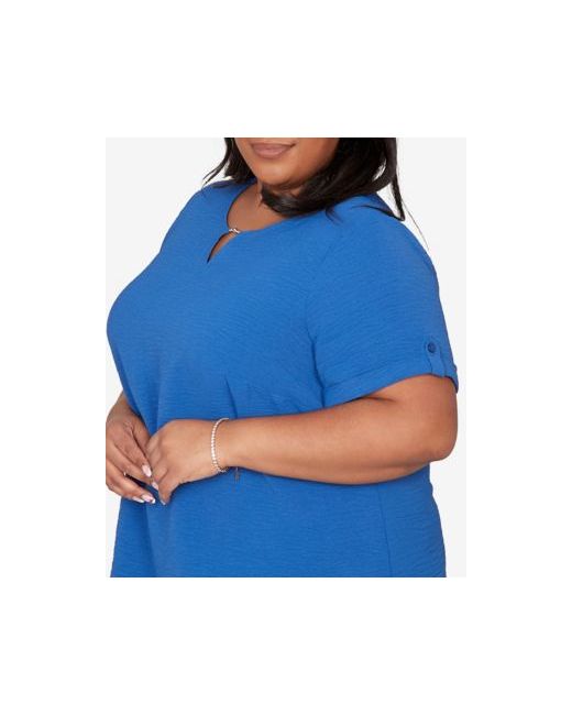 Blue Plus The Royal Treatment Solid Rolled Short sleeve Top