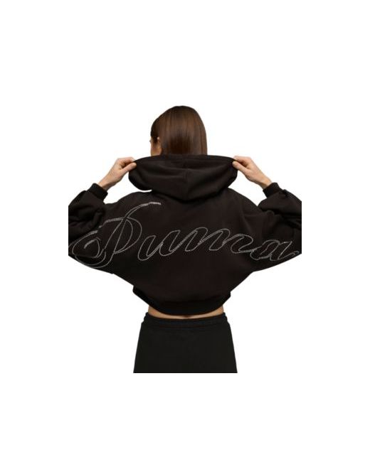 Bedazzled detailing and a cropped full-zip silhouette define this essentials hoodie from Puma. The long sleeves offer a cozy, stylish layer for everyday wear.
