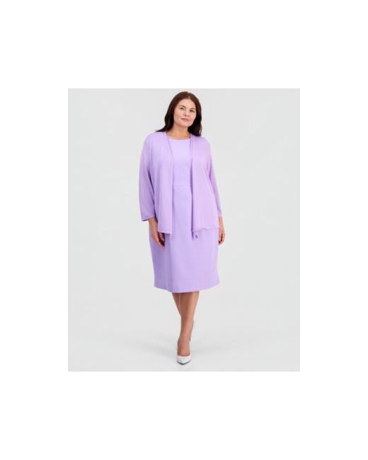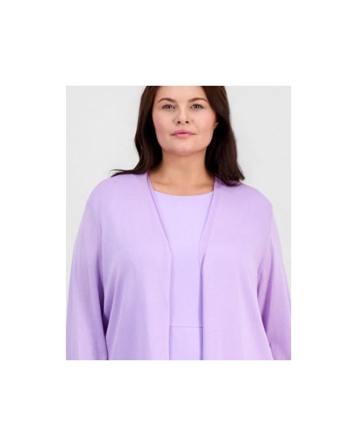 Kasper's plus size cardigan features a relaxed, open-front design with a smooth, clean finish along the edges. An A-line silhouette drapes elegantly for a versatile and stylish appearance.