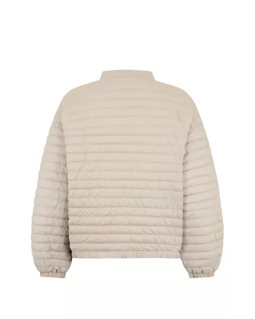almond beige horizontal quilting zip fastening round neck elasticated hem side welt pockets