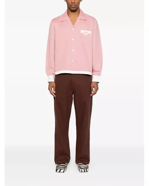 pink chest pocket camp collar long sleeves button fastening contrast cuffs