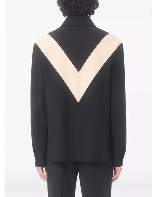 Valentino overshirt black Inlaid V VLogo patch zip fastening two front pockets The model is 187 cm / 6'1'' tall and wears an Italian size 46 The full look includes Valentino Garavani accessories.