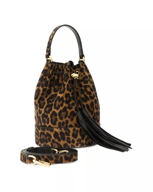 light brown leopard print top handle tassel detail drawstring fastening gold-tone hardware