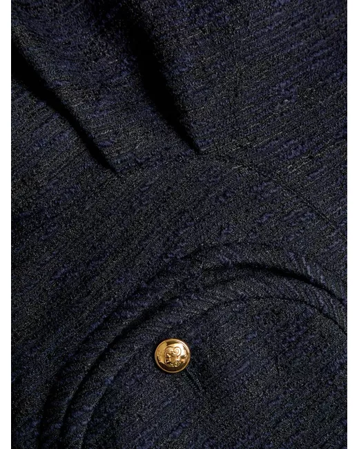 navy blue front button fastening notched lapels long sleeves textured finish