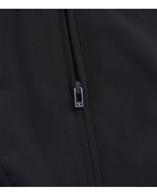 This Emporio Armani hooded jacket serves as a versatile outer layer, featuring a specialized technical fabric blend that is both soft to the touch and remarkably resilient. The minimalist exterior highlights the quality of the technical knit, providing a masterfully simple solution for those seeking an elevated, weather-ready wardrobe essential.