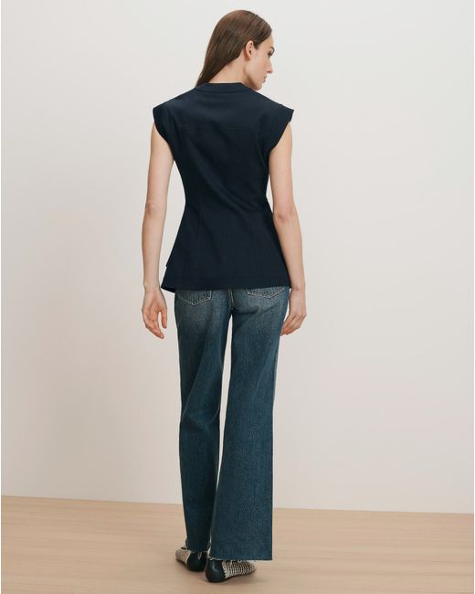 A tailored vest with modern proportions. Cut from stretch cotton twill with a soft hand feel, the navy Pendle vest boasts a fit-and-flare silhouette, angled cap sleeves, and an exaggerated cutaway hem for contemporary edge. Four buttoned pockets add structure and utility. Pair with jeans, or style with trousers for a warm-weather take on the suit.97% Cotton, 3% ElastaneLining: 100% ViscoseDry clean onlyStyle #2603CO190B0255