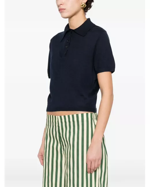 blue point collar short sleeves ribbed hem button fastening fine knit