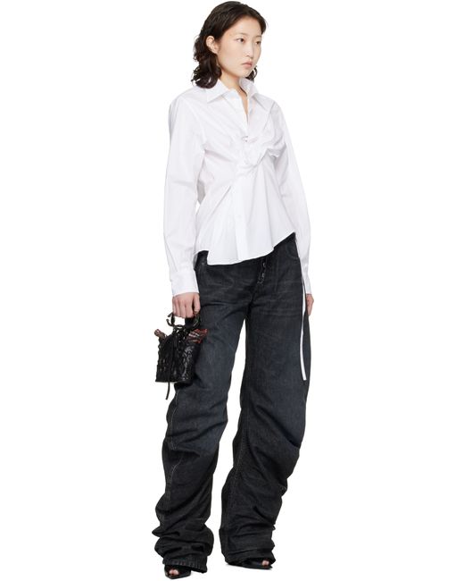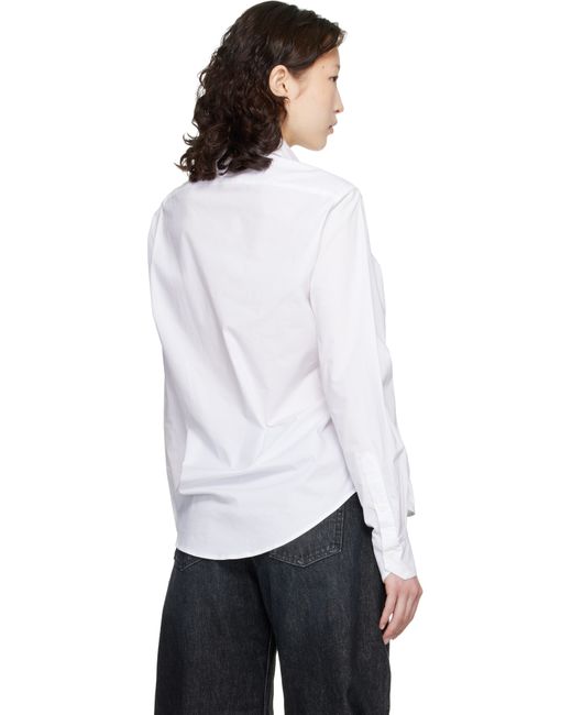 Stretch cotton poplin shirt. · Spread collar · Button closure · Twisted detailing and pleats at chest · Asymmetrical shirttail hem · Buttoned barrel cuffs Supplier color: White