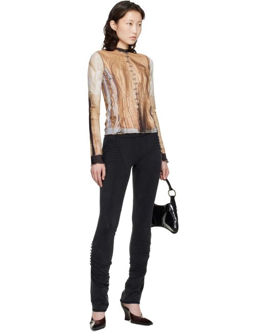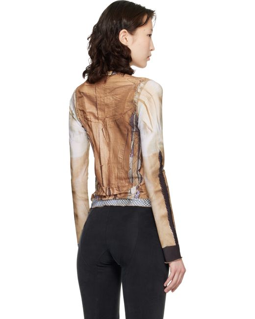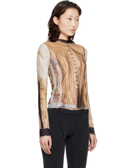 Stretch jersey top. · Trompe l'oeil graphic printed throughout · Lettuce edge at crewneck, hem, and cuffs Supplier color: Brown Victorian