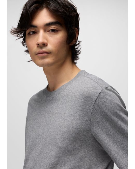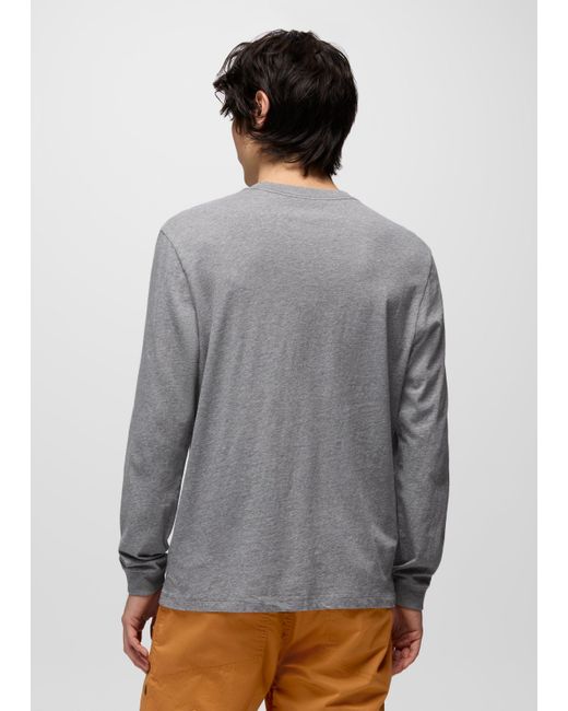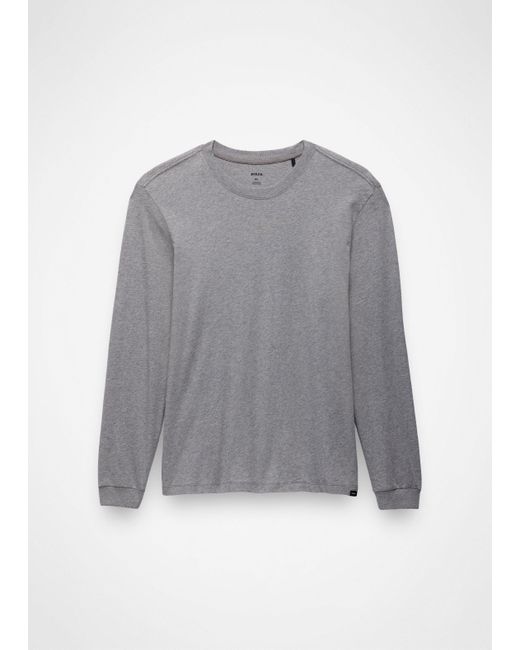 An essential long sleeve tee made from 100% Regenerative Organic Certified® Cotton. Made from 100% Regenerative Organic Certified® Cotton, this relaxed fit classic short sleeve is soft from the first wash, but won't fade when you wear it on repeat. The elevated basic is breathable to keep you comfortable all day. | Mens prAna Everyday Long Sleeve Tee in Grey, Size Large