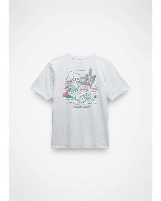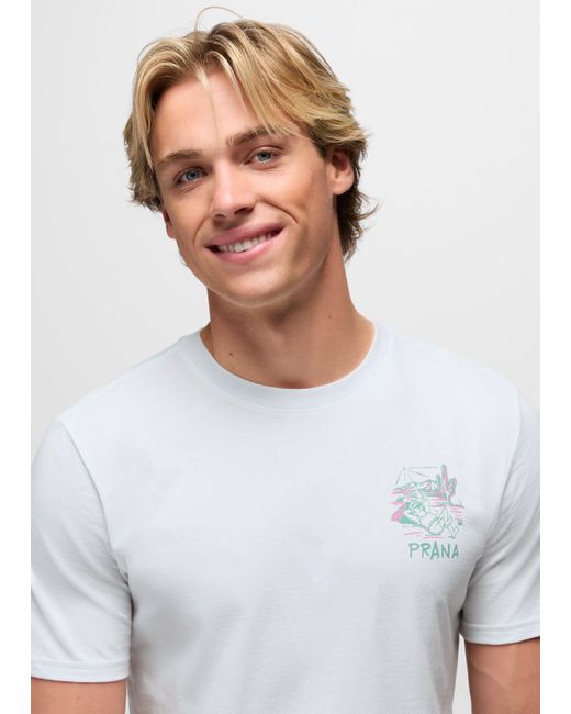 A Regenerative Organic Certified® Cotton graphic tee with a laidback graphic and OG prAna spirit. Purpose built. The prAna Sol Scape Short Sleeve Graphic Tee is a standard fit crewneck tee with original graphics that nod to our heritage and laidback living. Made in Regenerative Organic Certified® Cotton for premium softness and comfort. | Mens prAna Sol Scape Short Sleeve Graphic Tee in White, Size Large